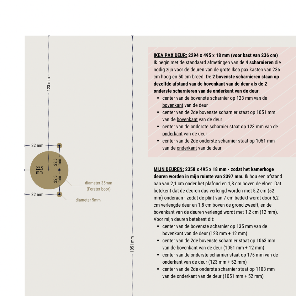 4.2 Afstand scharnieren berekenen voor DIY kastdeuren die passen op IKEA PAX 236 cm