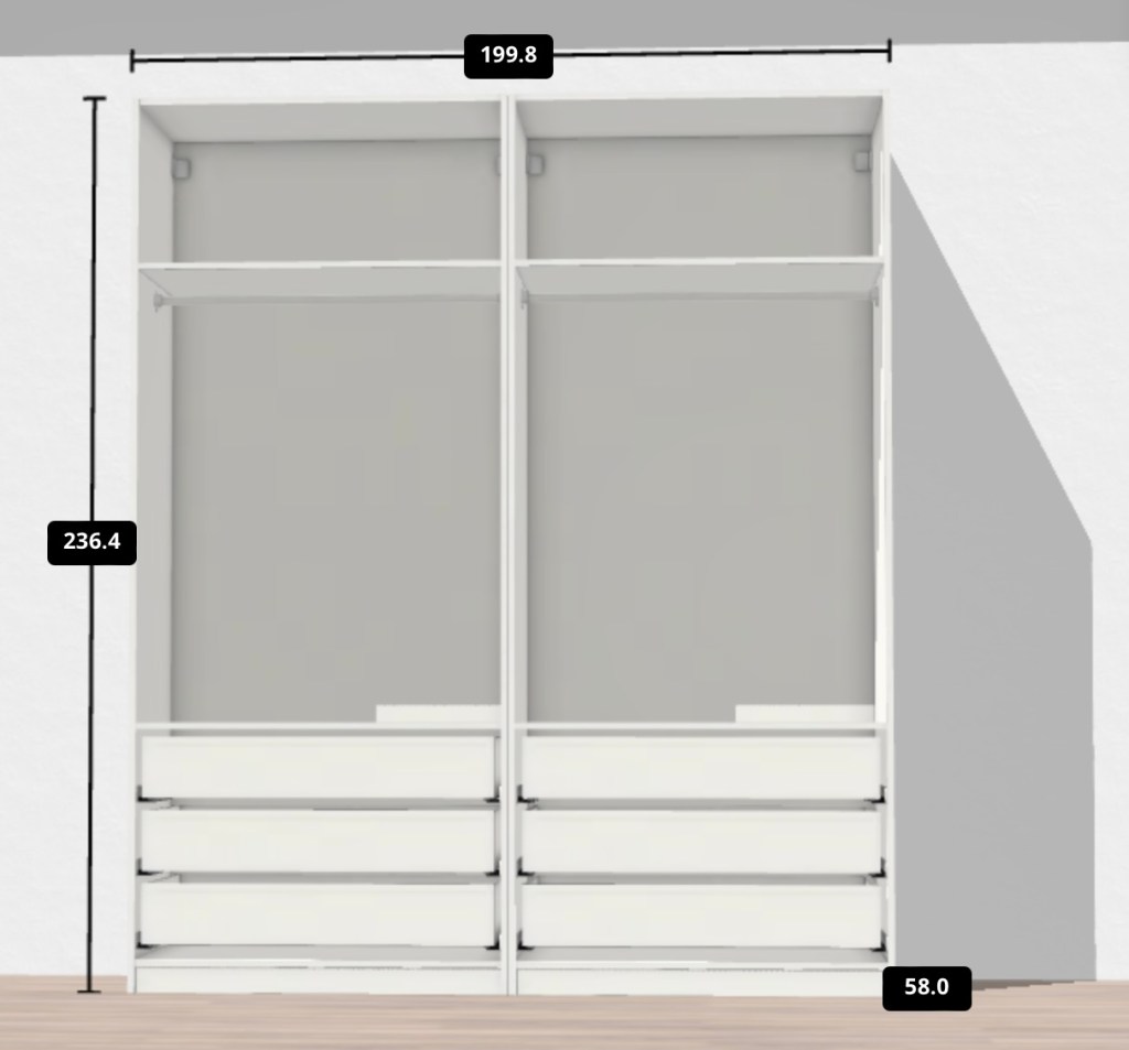 • 236,4 cm – hoogte van de IKEA PAX elementen